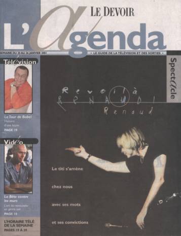 Revoilà Renaud. Ça faisait une paille. Traduisons: une mèche. Huit ans depuis les grosses boums au parc des lies et à l' Agora de Québec; Sept ans depuis le dernier album de matériel neuf, A la belle de mai Revoilà le titi sans tambour ni trompette: presque en catimini, l'oiseau rapplique en queue de tournée française à la fois discrète et triomphale. Tournée de petites salles bondées partout. C'est pareil ici: de prolongation en prolongation, on en est à six soirs au Spectrum, à Partir de ce dimanche (plus lundi et les 2, 3, 5 et 6 février). Ça afflue aussi en région, au Théâtre du Vieux Terrebonne (25 janvier) comme au Vieux Clocher de Sherbrooke (le 26). Le pays entier est Morgane de lui, c'est sûr.